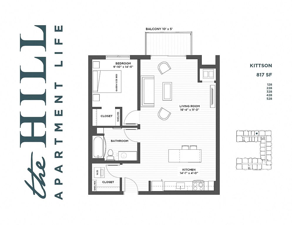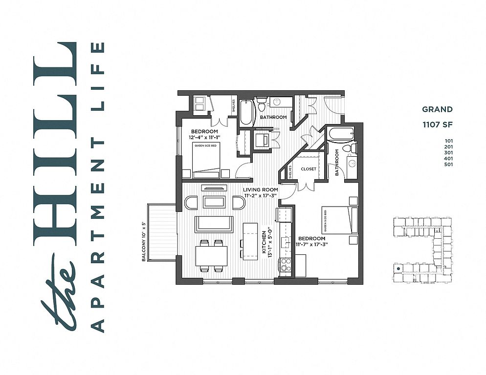 The Hill Apartments has a walk score of 85, it's very walkable.