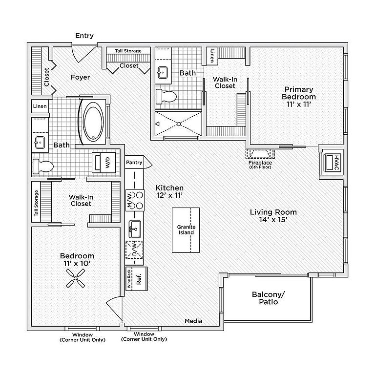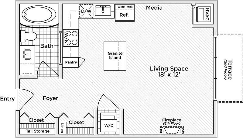 - Fireplace: Sixth Floor Fireplace