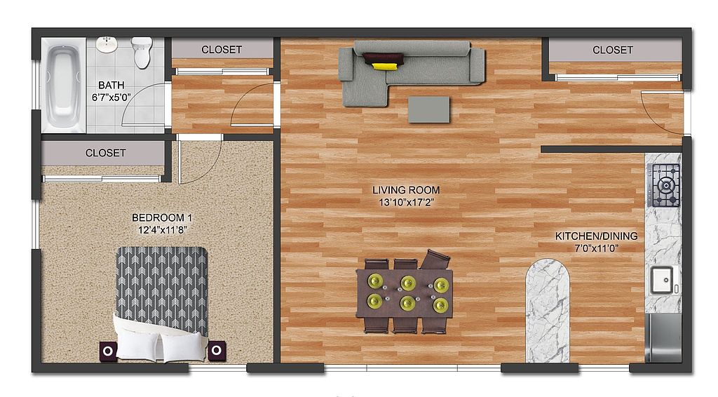 2 1 bd, 1 ba | 592 | Now | $1,349 |