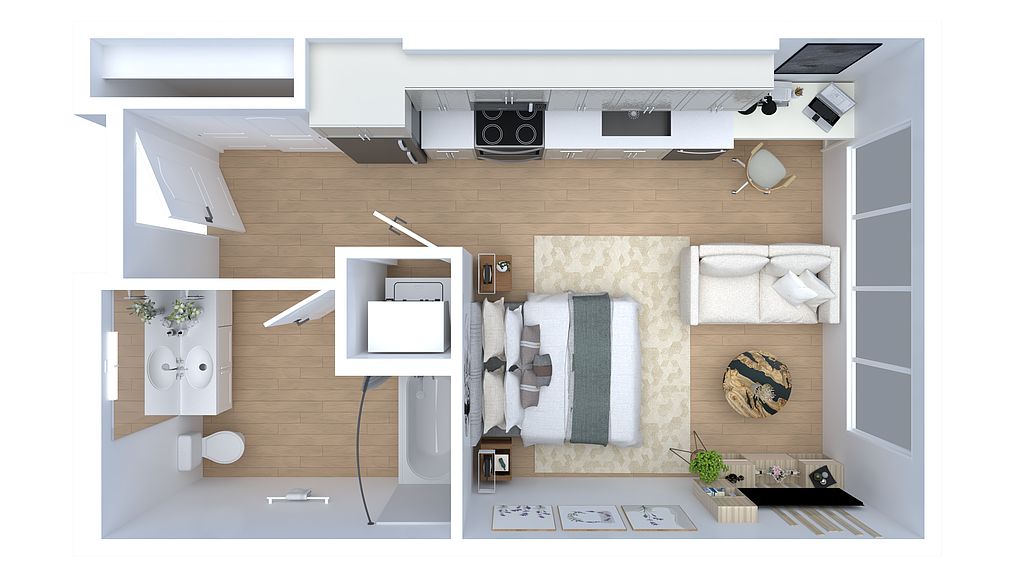 Cozy studiosThoughtfully designed apartmentsWell-crafted interiorsInviting architecture