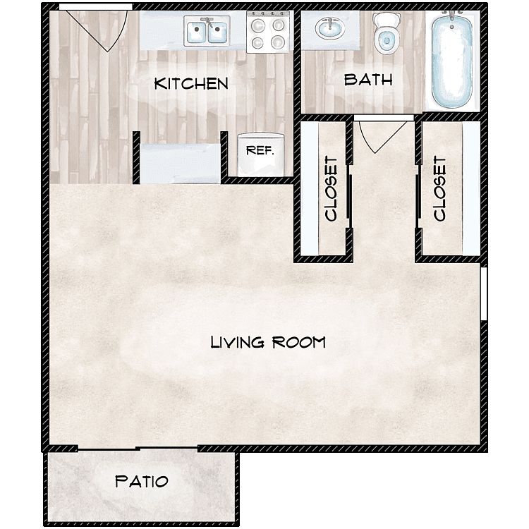At Maya Linda Apartments, we offer newly renovated studio, one, and two-bedroom floor plans. Designed with your lifestyle in mind, our apartments for rent include air conditioning, carpet, hardwood floors, vertical blinds, and mirrored closet doors. You will love preparing gourmet meals in your all-electric kitchen with microwave and refrigerator. After a long day, just think how nice it would be to relax on your personal balcony or patio.