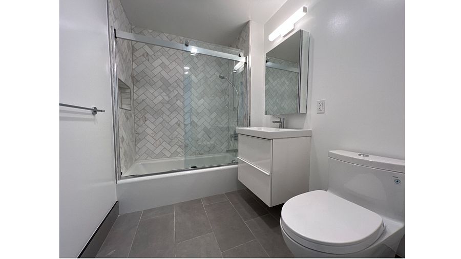 The bedrooms offers a serene retreat with plush finishes and large windows, while the spa-inspired bathroom features upscale fixtures and contemporary tile work.