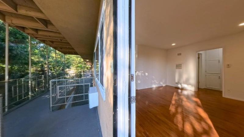 This first-floor one-bedroom, one-bath apartment has been thoughtfully updated to combine comfort with style. The spacious living and dining area includes hardwood floors, fresh paint, recessed lighting throughout, a wall air conditioner, a gas wall heater, built-in shelving, and a large double-pane sliding glass door with new vertical blinds that opens to your private patio.