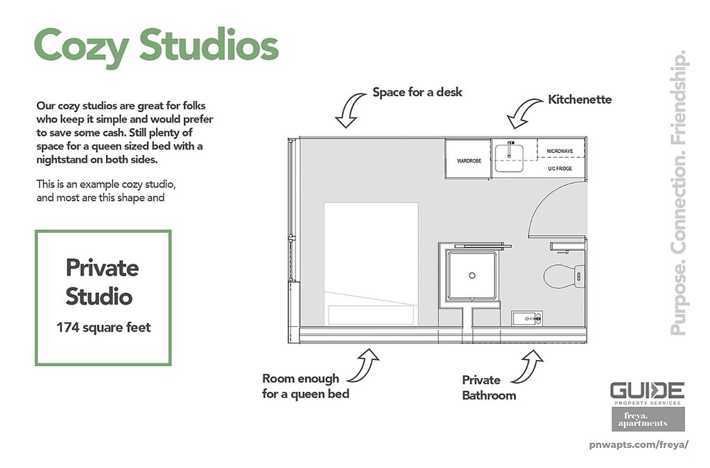 Freya Apartments - Private Studios + Social Connection is in the Loyal Heights neighborhood in Seattle, WA.