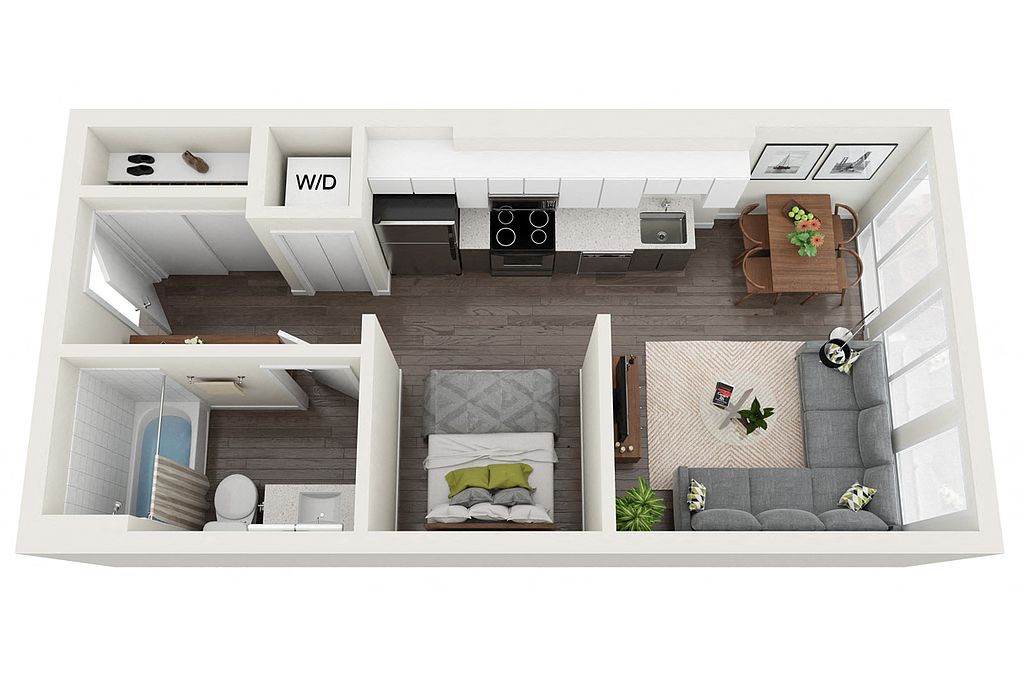 Energy-efficient appliancesStudio and one-bedroom layouts