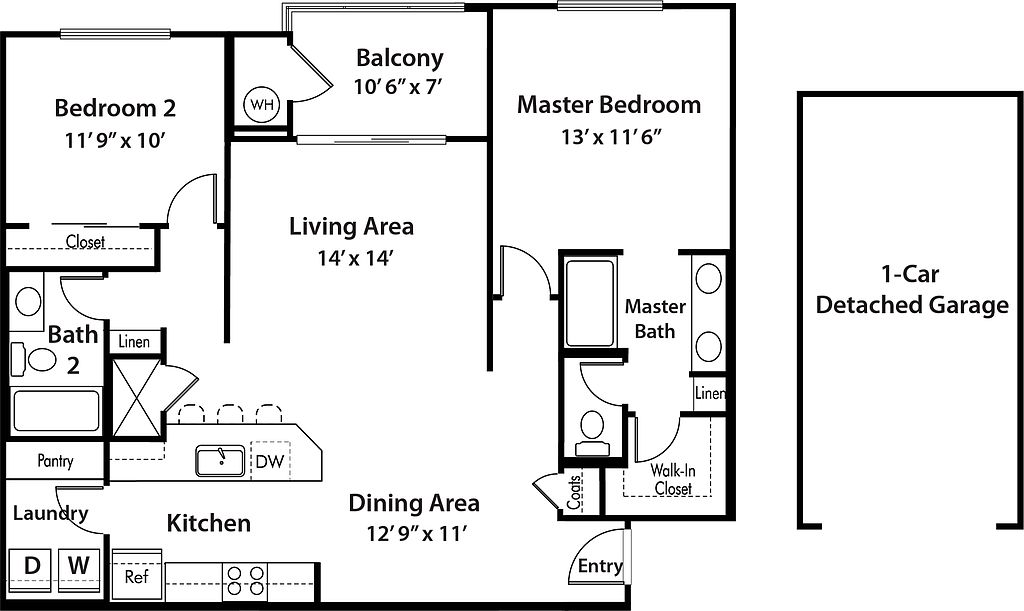 - Garage: 1-Car Detached Garage