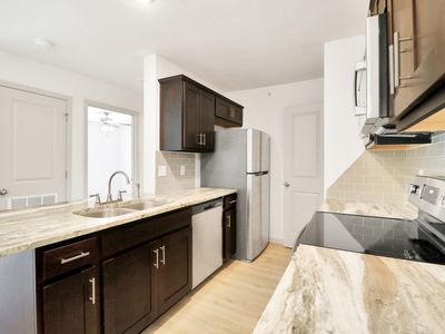 Beautiful home at 1075 sq ft ! This 2 bedroom 2 bath 2 car garage home has so much to offer .What a spacious open floor Plan with plank flooring throughout. The living room has a great amount of space to enjoy with your family .The kitchen includes a Oven/Range as well as dishwasher , and an ample amount of space on the countertops NO FRIDGE INCLUDED . The two bedrooms are so spacious including ample closet space and room for storage. The bathrooms offers a bath /shower combo and the second a walk in shower. Big bonus W/D hookups and the back yard has ample room to entertain with a deck. This home is just perfect for you ! This is a end unit even better! So much to offer All of this for only $1000.00 with $1000.00 deposit. Get this before its gone.