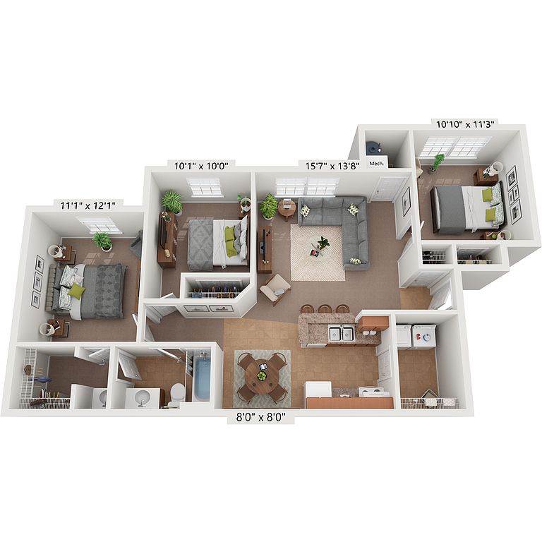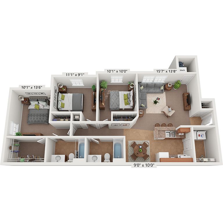 In-home washer and dryerSpacious layoutsSwimming poolMulti-purpose sports court