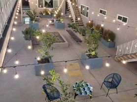 MUST SEE! Lush garden courtyard. Quiet & charming neighborhood! Unit has luxury hardwood like composite floors. Built-in appliances, freshly painted, central air+heat, community laundry room-open 24/7, Building accessed via intercom entry & gated reserved parking. Close to studios, shopping, schools, parks and so much more!