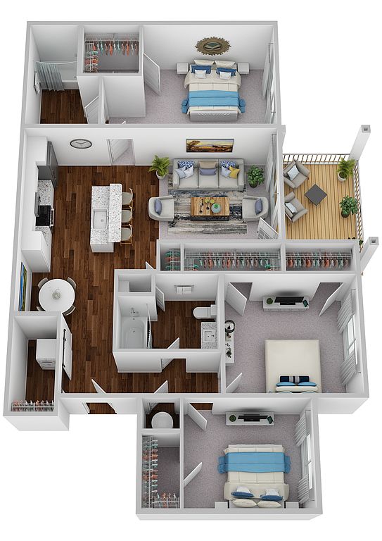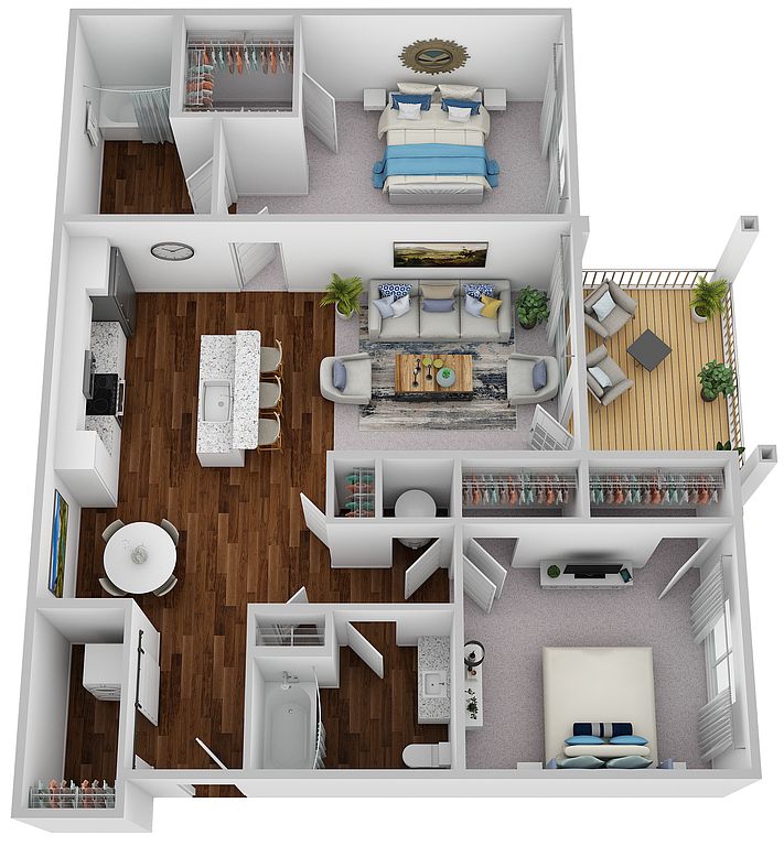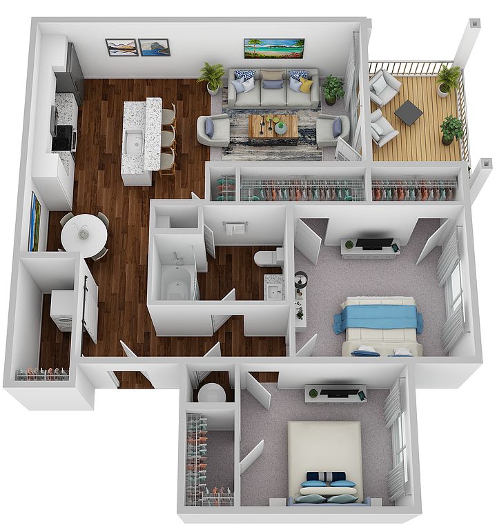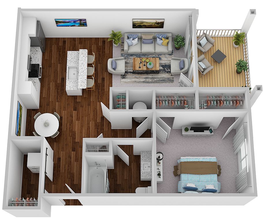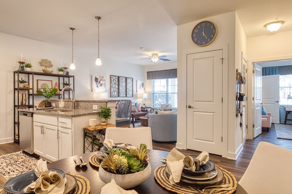 Inside your home, enjoy thoughtfully designed interiors with granite countertops, kitchen islands, stainless-steel appliances, full-size washer and dryer, private patios or balconies, and all the modern features that make life comfortable.