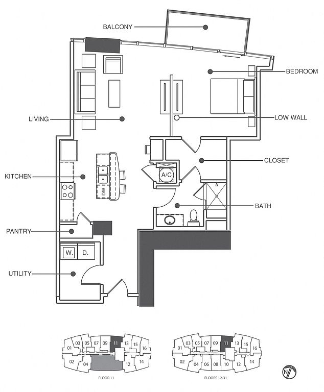 2 bd2 ba1K sqft