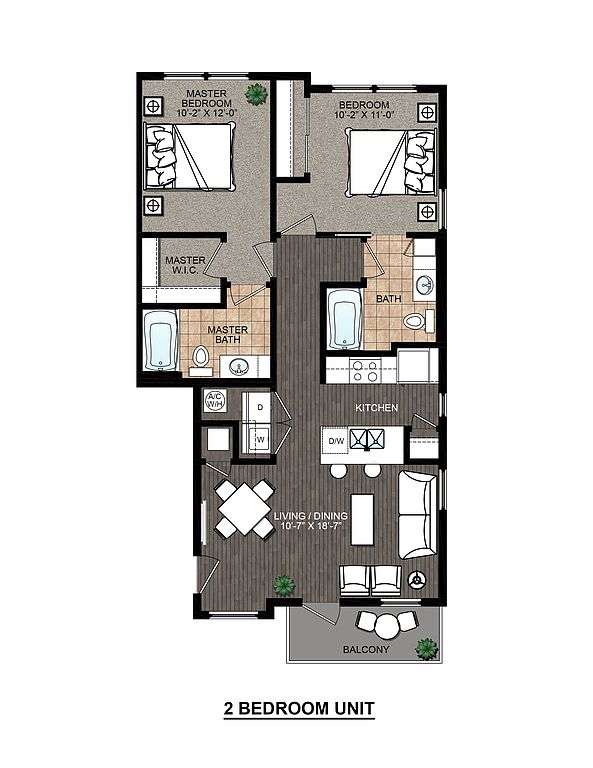 Vinyl plank flooringFull size washer dryerGranite countertopsStainless steel appliances