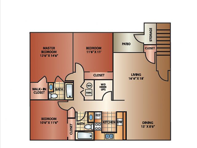 - Washer/Dryer Hookups: Full Size Washer & Dryer Connections