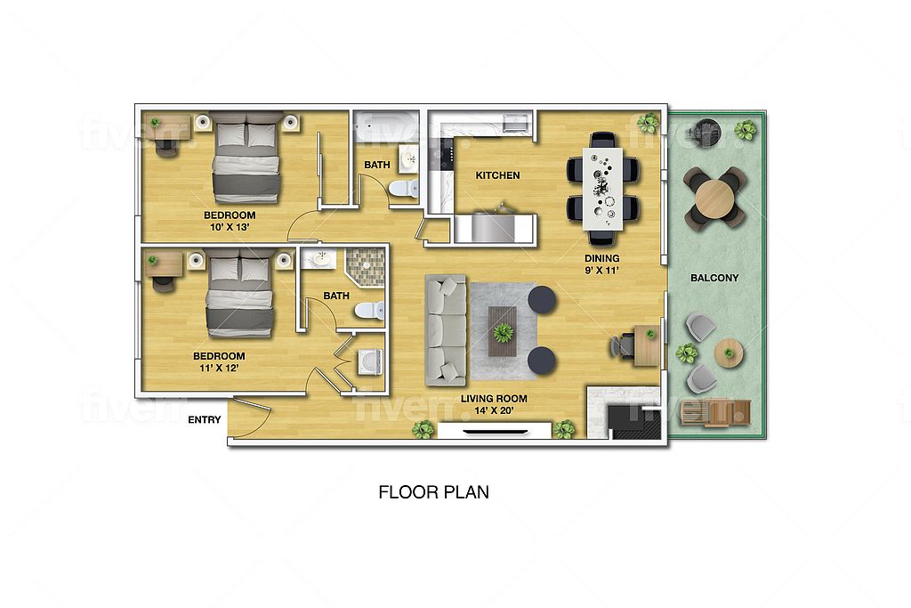 The 3D Tour of this available unit is of a similar unit. Same Layout but different flooring.