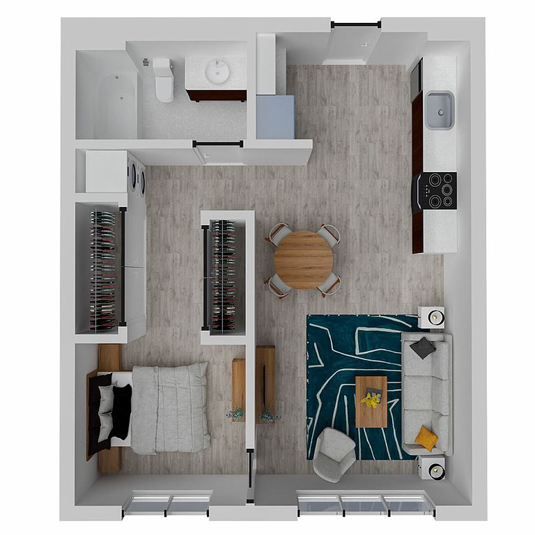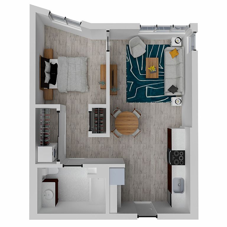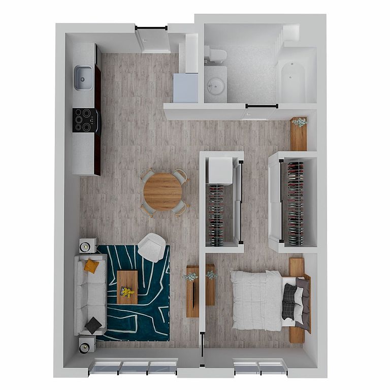 - Modern Studio, One-, Two-, And Three-bedroom Layouts, Including Townhome-style Plans