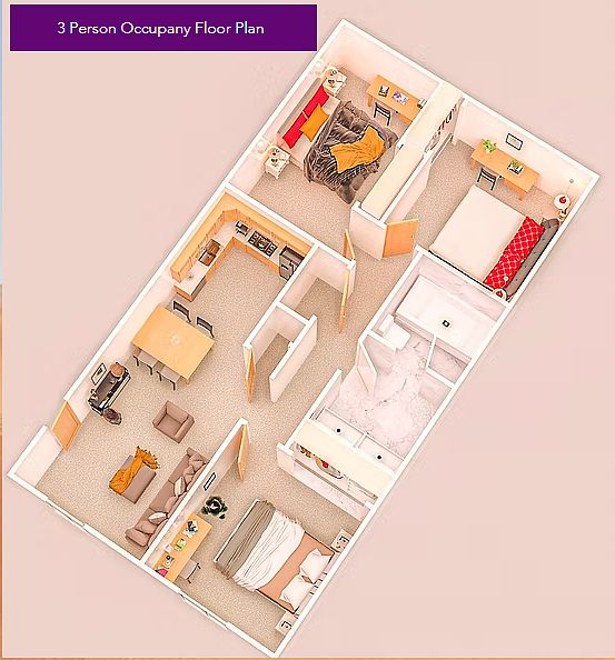Lease Price listed are by Person and Room. Each person will have their own private bedroom. All units are 3-bedroom units.