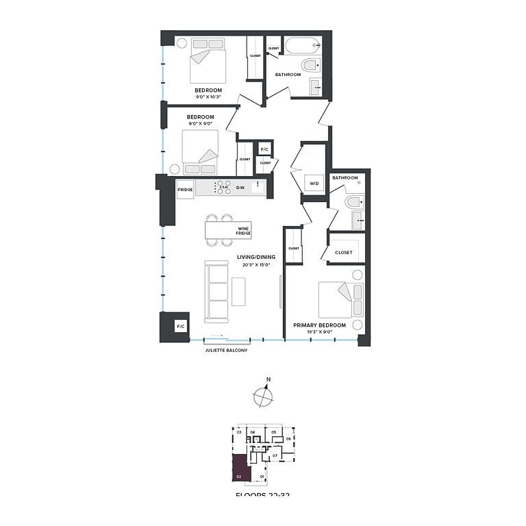 Large closets with organizersSky lounge and terraceKeyless smart locksIn-suite washer and dryerGoogle nest thermostatsStainless steel appliancesWindow sunshades
