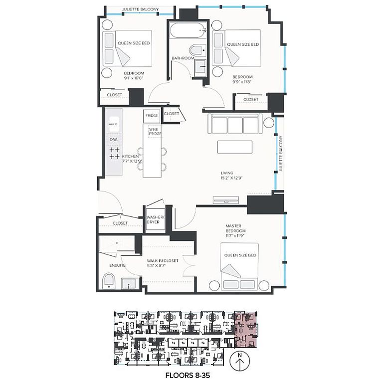 Quartz countertopsFloor to ceiling windowsLuxury plank laminate flooringBuilt in wine refrigeratorsStainless steel kitchen appliances
