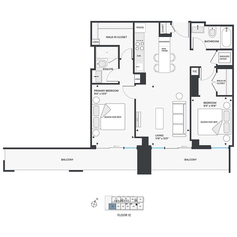 - Full-size in-suite washer and dryer