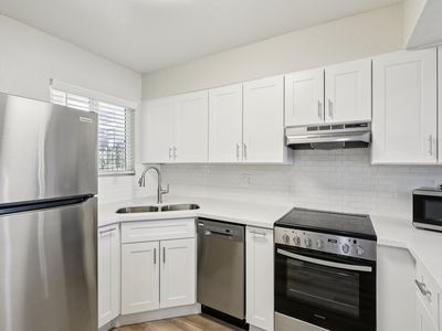 This fully remodeled 1BR/1BA unit is rent ready and has everything you need!! New everything as of 10/2025 - fresh interior and exterior paint, new kitchen cabinets, countertops and stainless steel appliances, new shower surround, toilet and vanity!! Washer & dryer hookups in a dedicated closet inside the unit. Mini split AC/Heat units. Owner pays for Water, Sewer, Trash and Tenant pays for electric.