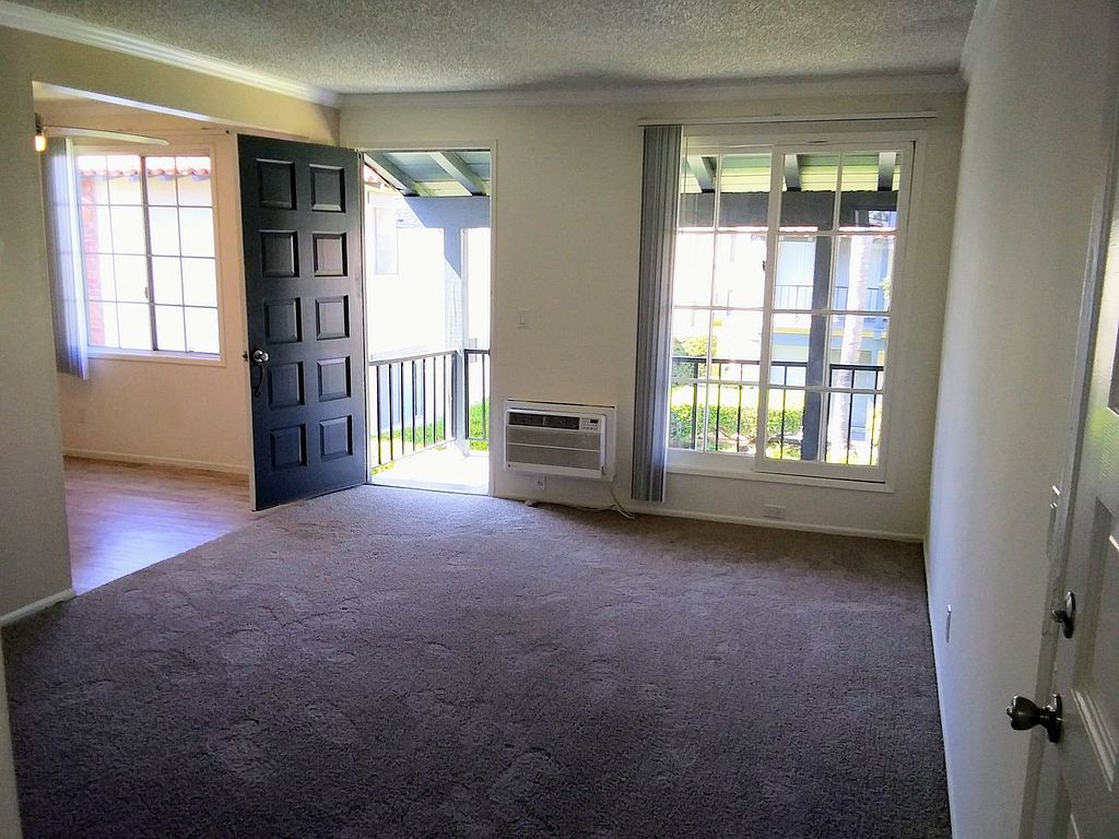 Downstairs apartment, approximately 680 Sq-ft. Wood-like flooring and carpet, wall a/c and heater, gas stove, patio, as well as many upgraded interiors.