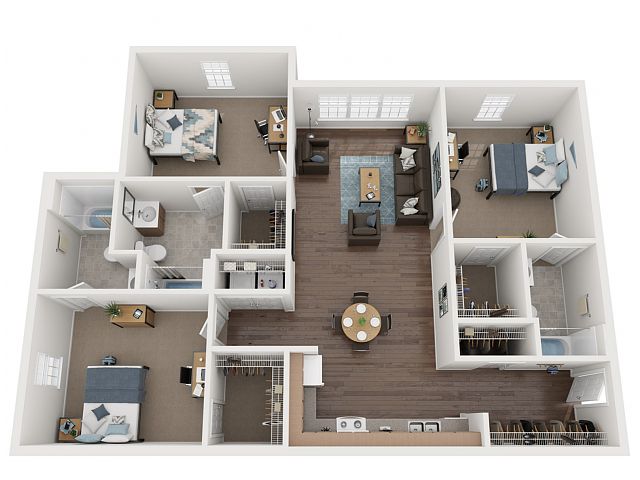 Open-concept layoutsWalk-in closetsAmple storageResort-style poolIn-unit washers and dryersFully equipped fitness center