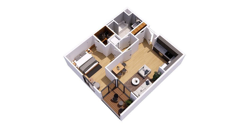 At The Brightly, you can relax by the pool in our beautiful cabanas or play billiards in the recreation room. Our state-of-the-art fitness center is open 24/7 and is equipped with Peloton and Tonal machines. Our apartments feature open-concept studios, one-bedroom, and two-bedroom homes with deluxe stainless-steel appliances, an in-home washer and dryer, quartz countertops, laminate flooring, and private balconies with stunning views.