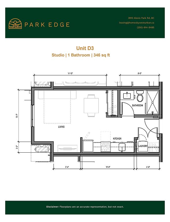 NOW RENTING - BRAND NEW UNITS AVAILABLE! The Park Edge at 3910 Alexis Park Drive, Vernon, is an 84-unit property. It offers new studio, 1- bedroom and 2- bedroom pet friendly rental units. The Park Edge is located just minutes from downtown Vernon, with easy access to a variety of amenities, including shopping centers and restaurants. All units have air-conditioning and in suite laundry. WiFI package is included in every unit. The building features a gym, dog run, dog wash, and storage lockers. If available, ground floor or underground parking is an additional monthly fee. Pet friendly, welcoming dogs or cats with pet deposit. *Please note, listed prices are the starting rates of that unit type*
