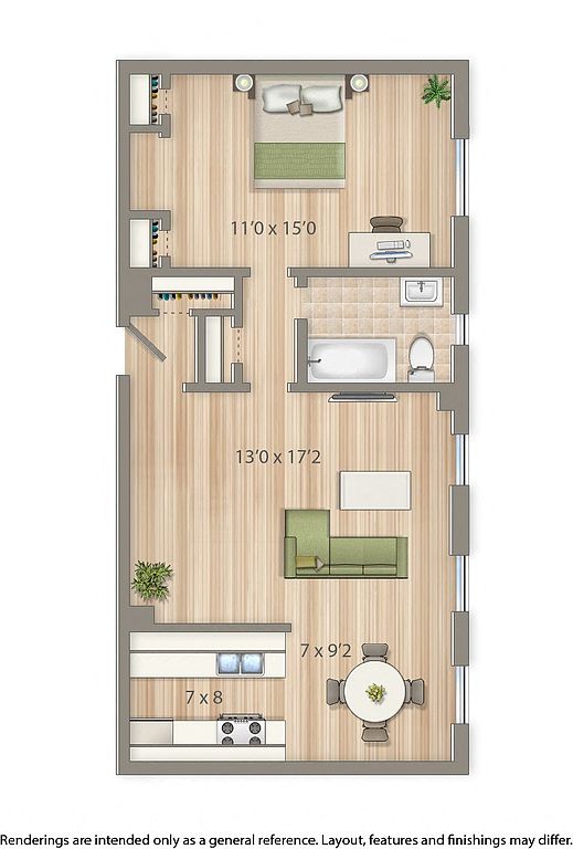 Huge bedroomSeparate dining areaGalley kitchenSpacious walk-in closet