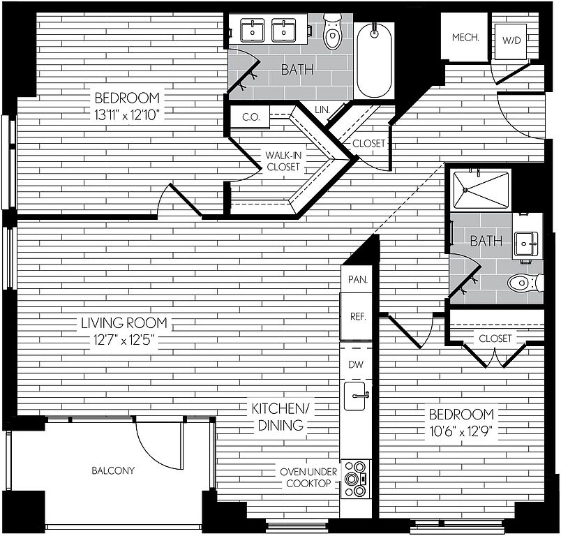 Eliot on 4th | B7 | 2BD | 2BA | 1121 SF |