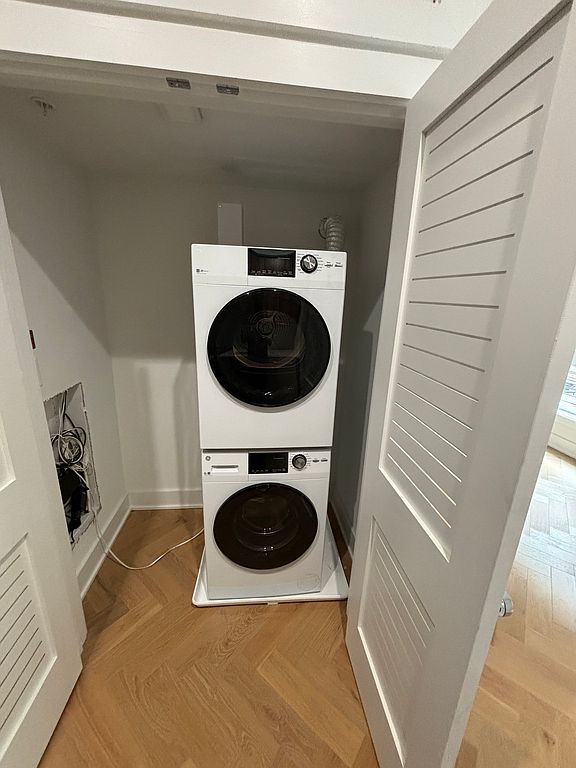 Modern appliancesWasher and dryerOpen conceptLots of natural lightingHardwood floors