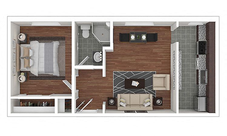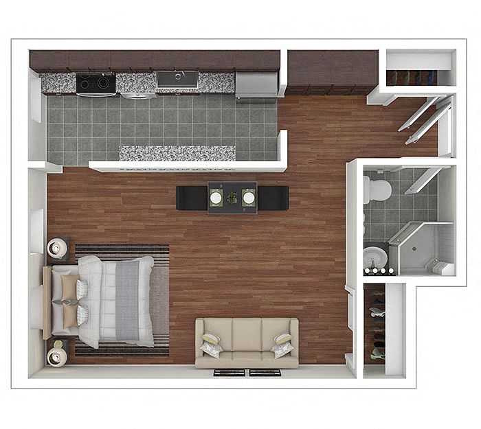 Studio 1 ba368 sqft