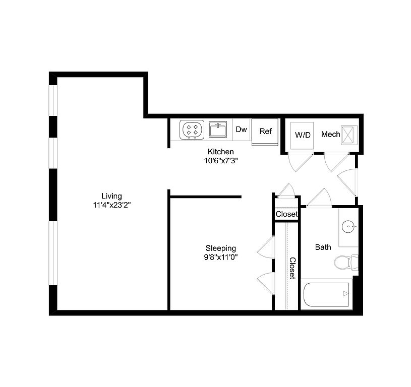 Your apartment comes loaded with all of the features to live in luxury. Full-sized washer and dryer in every apartment, wood-style plank flooring, and CleanSteel appliances represent some of the sought-after appointments included in your home. The open floor plans and natural light help create the ambiance as you make the apartment your own.