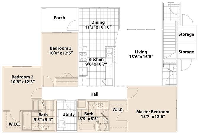 3 bd1 ba1.1K sqft