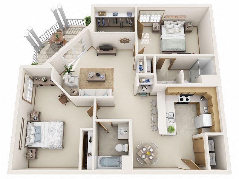 Private balcony or patioExtensive landscaped courtyardsIn-home washer and dryerCeiling fansWalk-in closets