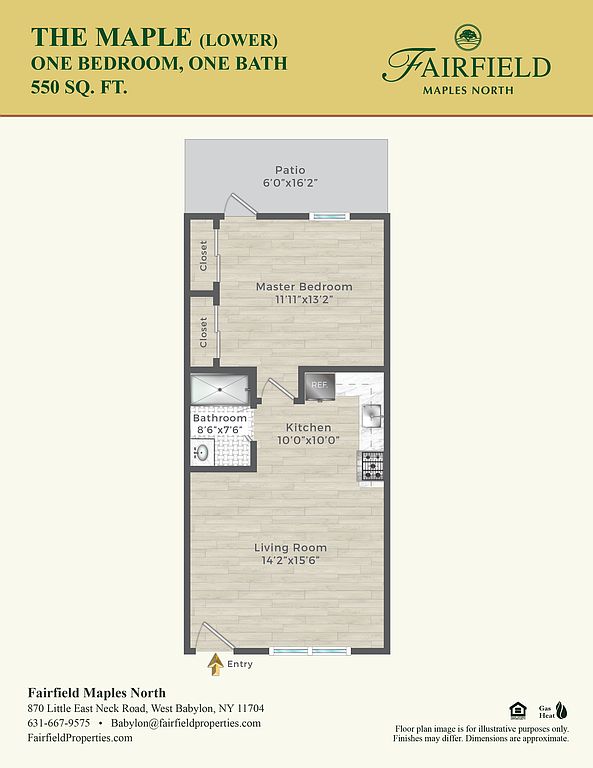 Fairfield Maples 55 And Over Community. Featuring a free resident clubhouse with fitness equipment and billiards. Apartments have patio or terrace. Easily accessible to Sunrise Highway, Southern State Parkway, Route 109. Near Babylon Village and the South Shore beaches and golf courses.