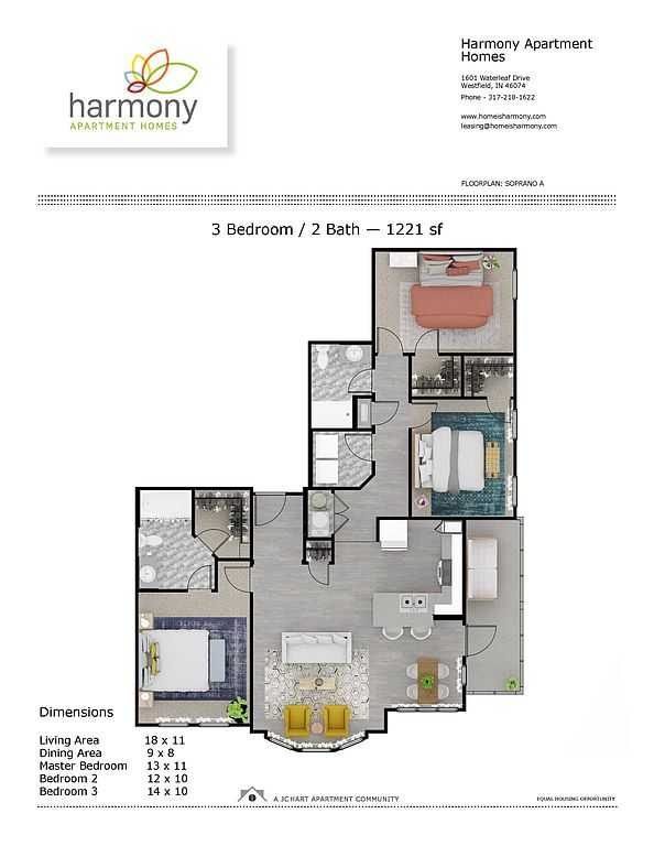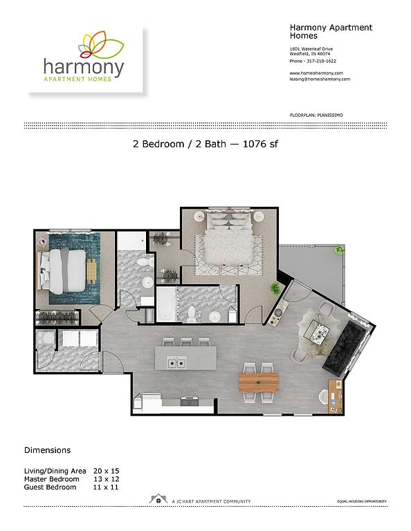 Move in today! A J.C. Hart Property, Harmony Apartment Homes offer a variety of 1, 2, & 3 bedroom apartments and luxury amenities off of 146th St. & Ditch Rd. in Westfield, IN.