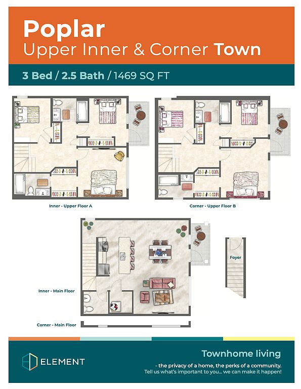 All the perks of townhome living without the stress of homeownership. Modern 1, 2, 3 & 4 bedroom Townhomes now renting in Prairie Pointe. Element townhome community offers the lifestyle you have been looking for private entrances, gourmet kitchens, and welcoming, multi-level living with large, bright light-filled rooms.