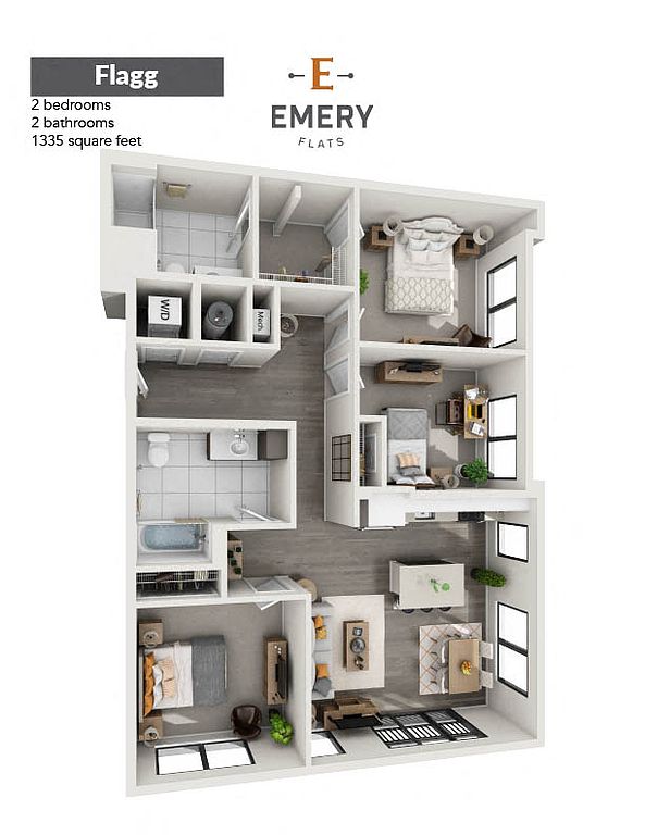 Home isn't just where you sleep. It's where you unwind. It's where you have fun. It's where you are free to be yourself. And it's where you become part of a community. That's where Emery Flats comes in. Emery Flats was built with you in mind. Our modern apartments are designed to give you that "it's good to be home" feeling. Our creative amenity spaces are designed to bring neighbors together as friends (though our game room and board-game nights may be designed to test those friendships). Whatever you love most about coming home, you can find it at Emery Flats.