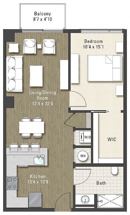 Apartment features include 9'6" ceilings, Panoramic Windows with River and Park views, Designer Kitchens with High Gloss Cabinetry and Stainless Steel Applisnces, Wide Plank LVT Floors and Herringbone Carpets in bedrooms, Spa Inspired Bathroooms with Glass Shower Enclosures, Large Walk-in Closets and a Washer & Dryer in every apartment.