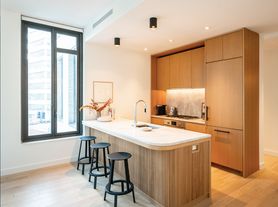 The warm and welcoming interiors of each pristine, one-of-a-kind rental residence is crafted by acclaimed Gachot Studios and offers 10-foot ceilings, wide plank White Oak flooring, sound insulated panoramic windows, and a Bosch Washer/Dryer. Handcrafted Custom Wood kitchen cabinetry wraps Tundra Grey countertops with polished nickel Waterworks fittings and a top-of-the-line integrated appliance package, while individually designed bathrooms are finished in the finest marble with stone accent walls and custom millwork vanities.
