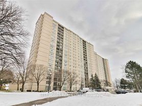 Beautifully renovated 950 sq ft corner unit featuring soaring 10' ceilings and an open-concept living area. The bright and spacious layout includes generously sized bedrooms and a walkout to a 205 sq ft terrace with garden views and a stunning south-facing exposure. The modern kitchen is equipped with quartz countertops and a ceramic backsplash. Upgrades include new laminate flooring, pot lights, and an updated bathroom. Located just minutes from the subway, Fairview Mall, and Highways 401 and 404. Building amenities include an outdoor swimming pool, gym, sauna, and tennis court.