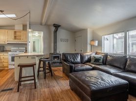 The open-concept layout features warm wood finishes, abundant natural light, and a cozy wood-burning stoveperfect for Mammoth's winters. The updated kitchen includes granite countertops, stainless steel appliances, a gas range, and ample cabinet space, opening to a welcoming dining area with bay windows and access to a private deck.