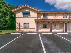 1 story unit with 2 bedrooms and 2 bathrooms. Covered aluminum terrace at the back patio for weekends BBQ's. Washer and dryer inside the unit, Tile floors throughout, Stainless steel appliances. Corner unit, very private, includes 2 parking spaces. Nice open floor plan, very spacious and big master bedroom capable of fitting a king size BED. Great location, close to shopping centers, expressways, schools. Very wanted area and private neighborhood. 1 year lease.