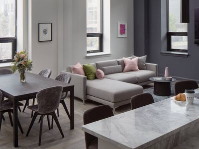Converted in 2018 from a historic ballet supply store, The Baum's Building blends architectural character with modern convenience in the heart of Philadelphia. High ceilings, oversized windows, and natural light define the residences, creating a spacious and inviting atmosphere.