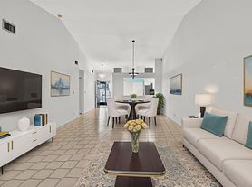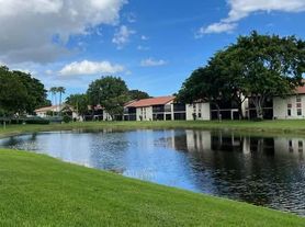 Available Jan 1st in the gated 55+ community of Palm Chase. This beautiful 2 bed, 2 bath condo is incredibly spacious and offers an oversized screened-in patio with breathtaking views of the lake. There's ample living space with a large living room, separate open den/office, dining room and an eat-in kitchen. The master bedroom features a walk-in closet, a standard closet, and an en-suite bathroom with a walk-in shower. The entire unit has newer luxury vinyl flooring throughout and newer stainless steel appliances. There's a full washer and dryer located inside the unit as well and a newer A/C. Water and basic cable included. No pets per association - ESA and service animals are welcomed.