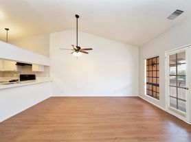 Enjoy a sophisticated and inviting atmosphere with vaulted ceilings, wood-inspired hardwood flooring, and elegant porcelain tile throughout.