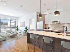 Contemporary galley kitchenDeep-soaking tubCustom vanityAbundant cabinetsGenerous storage spaceEat-in island