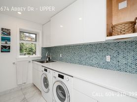Family area on a cul-de-sac in North Delta. Open kitchen dining with french doors to covered deck. This is the upper of a home with a single garage (small workshop area), separate laundry, and a spacious living room with a 3 sided gas fireplace shared with the dining room too. A pet would be considered.