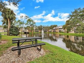 Beautiful luxury furnished turnkey, first floor, 2 bedrooms + Den/home office with sofa sleeper, 2 full baths, with great view of lake and water fountain feature, picnic table and grill easily accessible from screened in lanai, heated pool, jacuzzi, and clubhouse a one minute walk away. Perfect for your escape to Naples, this unit is located West of I-75 in the gorgeous Palm River area of North Naples, close to shopping, NCH North, and super close to Wiggins State Park and Vanderbilt Beach. Covered parking available only steps from the first floor entry make bringing in groceries easy. Primary bedroom with King size bed, 2nd bedroom queen size bed, Den with Queen size sleeper and roll top desk, Large screen TVs, in Living room and Primary bedroom, smaller screens in 2nd bedroom, den, and kitchen. Fast speed Fiber internet and cable included! Keyless entry front door. Kitchen has everything you need for cooking and entertaining, fresh new high quality linens and bedding provided, front loading washer and dryer in unit. Private Vanderbilt Beach guest parking perk included. Pickleball enthusiasts can walk/bike/drive to enjoy courts and friendly competition at nearby Veterans Park.